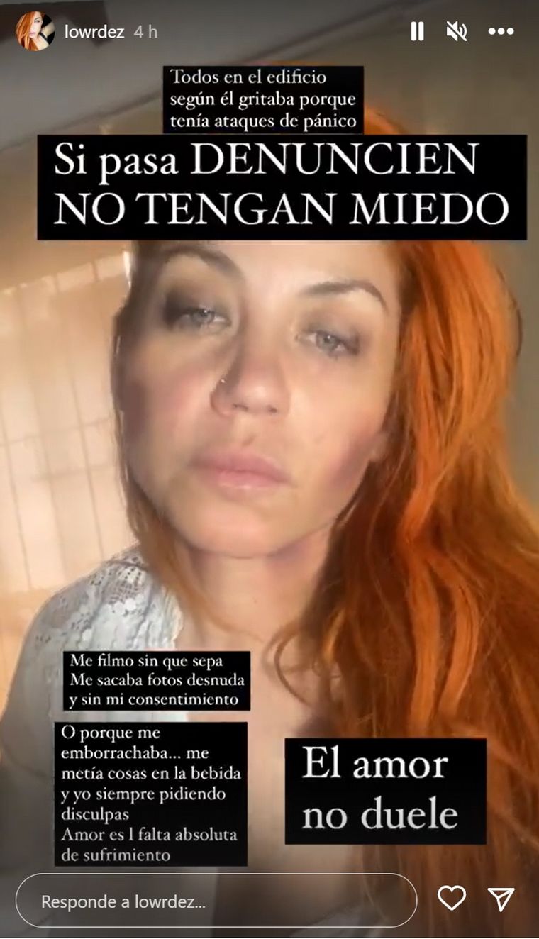 Y continuó “Me filmó sin que yo sepa. Me sacaba fotos desnuda sin mi consentimiento. Me metía cosas en la bebida y yo siempre pidiendo disculpas porque me emborrachaba. Amor es la falta absoluta de sufrimiento. El amor no duele”.