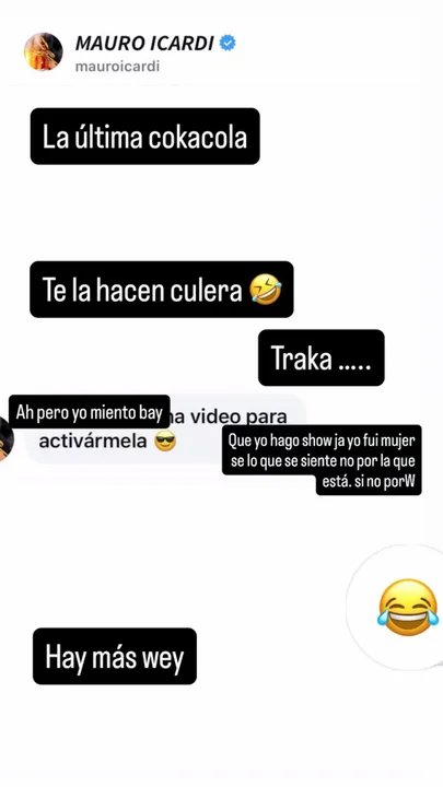 "Claramente, me escriben canales! Yo puse eso ahí para que la más "deseada" vea que no es la única cokacola.! Se reía tanto de Wanda y ahora me río de ella wey que me diga algo a mí va conocer una verdadera garra charrúa", cerró.