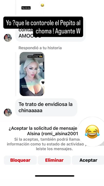 A ante la respuesta de uno de sus seguidores avisándole que la China la trató de envidiosa, ella contestó: “Yo? Que le controle el Pepito al choma. Aguante Wanda”.