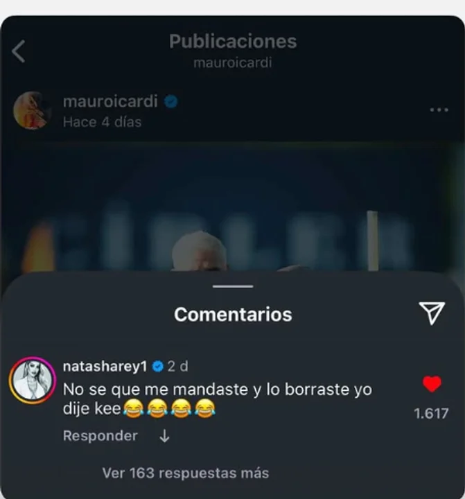 Todo salió a la luz cuando Natasha Rey, una rubia con un parecido a Wanda Nara, le dejó un comentario en un posteo de Icardi: "No sé qué me mandaste y lo borraste, yo dije kee".