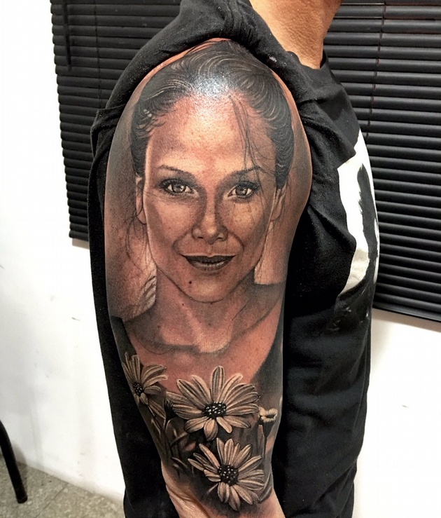 Alejandro Pucheta, el padre de Barbie Vélez es fanático de los tatuajes de mujer, y pese a las risas que recibió al tatuarse a Noelia Marzol, ahora se dibujó el rostro de otra bella actriz.