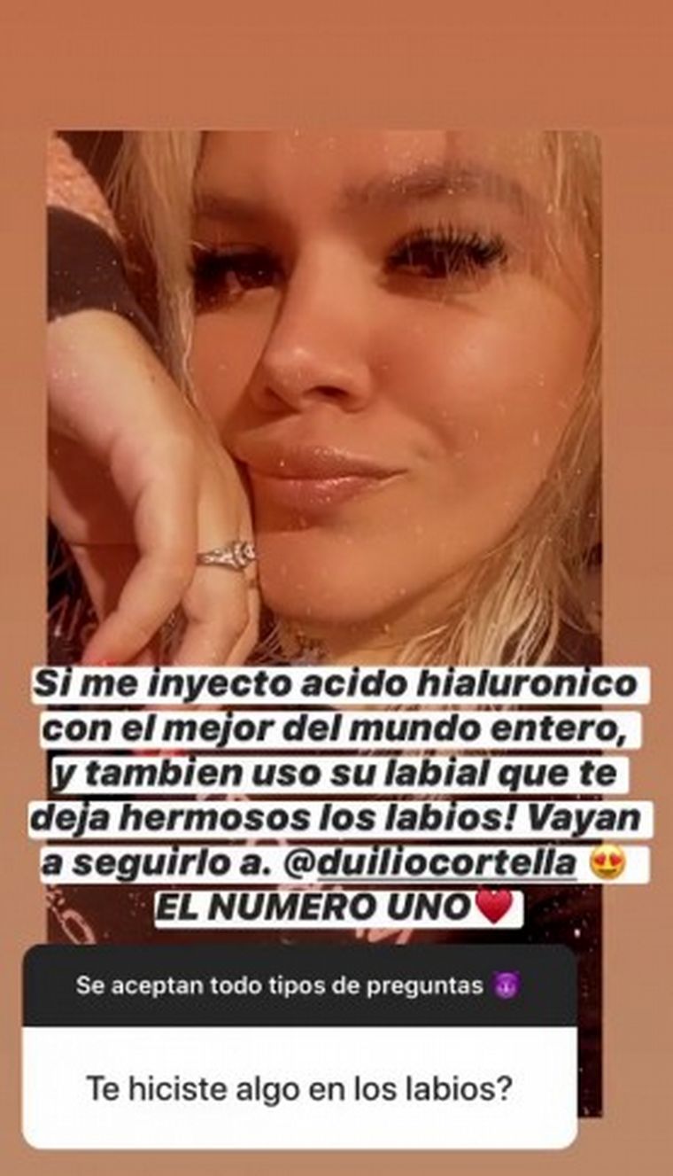 La mediática respondió a preguntas de algunos de sus seguidores y habló del cambio en su rostro. "Me inyecto ácido hialurónico", dijo.