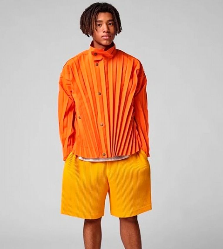 Miyake es conocido por el uso del plisado en sus prendas, sus sencillos jerséis de cuello vuelto, como los que popularizó Steve Jobs, o por su línea de bolsos Bao Bao con patrones geométricos, entre otras muchas creaciones.