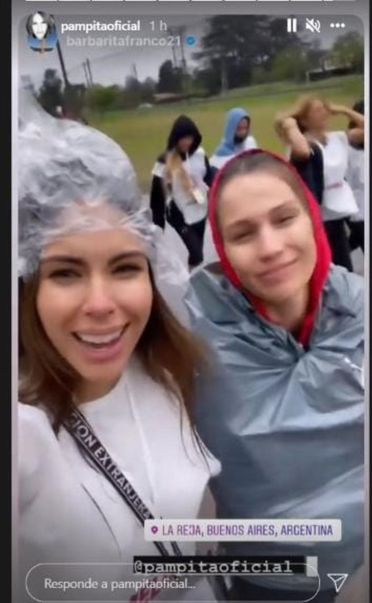La modelo participó de la tradicional peregrinación de 40 kilómetros junto a Barby Franco y otras amigas. Muy feliz, econtró la manera de hacerle frente a la lluvia. Mirá.
