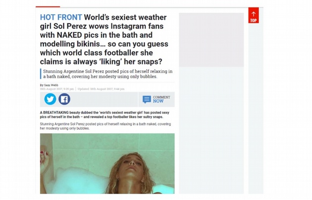 La popularidad de Sol Pérez alcanzó repercusión internacional ya que el portal inglés The Sun escribió un artículo donde asegura que "es la chica del clima más sexy del mundo".