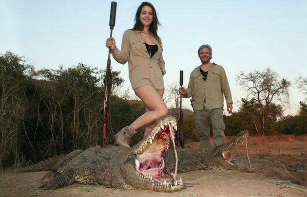 La cuenta de Twitter “Mucamas de Garfunkel” publicó imágenes de la modelo y el empresario posando sonrientes tras cazar animales salvajes en un safari.