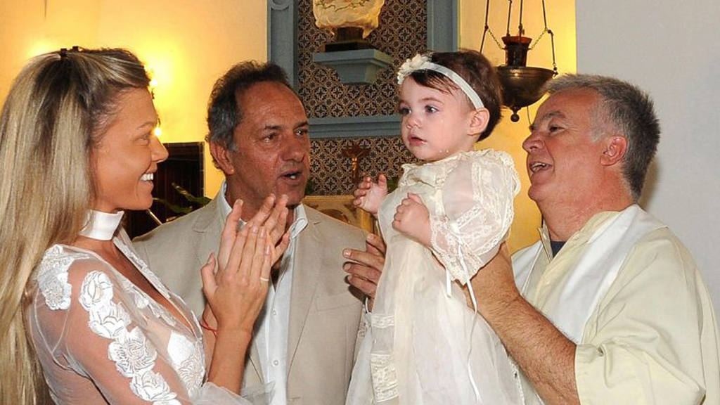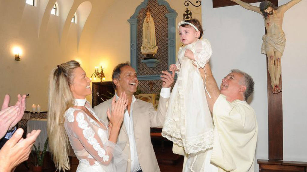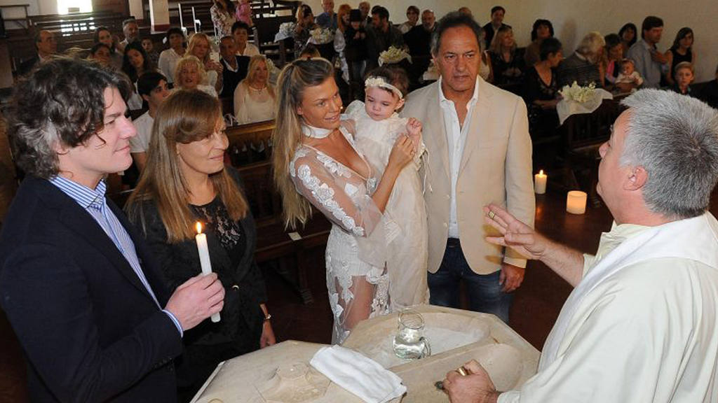 En el primer aniversario del nacimiento de su hija Francesca, el ex gobernador de Buenos Aires, Daniel Scioli, realizó junto a su pareja Gisela Berger el bautismo de la niña en la parroquia Salvador del Delta, en Tigre.
