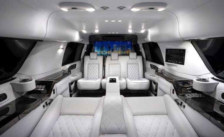 Las ventanillas de la limusina cuentan con cortinas eléctricas y tiene cinco asientos masajeadores y con funciones que se adaptan al clima que desee el usuario, ya sea frío o calor.