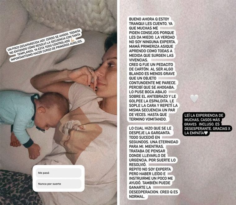 Noelia Marzol contó en un posteo de sus redes sociales los desesperantes momentos que vivió cuando su bebé se ahogó y tuvo que practicarle primeros auxilios.