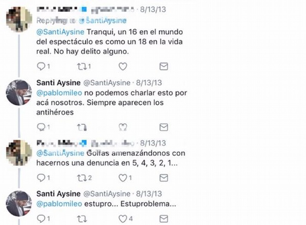 Luego, un amigo le respondió la publicación diciéndole que "un 16 en el mundo del espectáculo es como un 18 en la vida real" y que "no hay delito alguno".