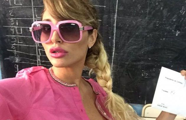 La polémica vedette sorprendió con su look a las autoridades de mesa de la escuela Nº 4 de Lanús Centro. Dentro del aula, se tomó selfies y hasta grabó un video. Entrá y mirá.