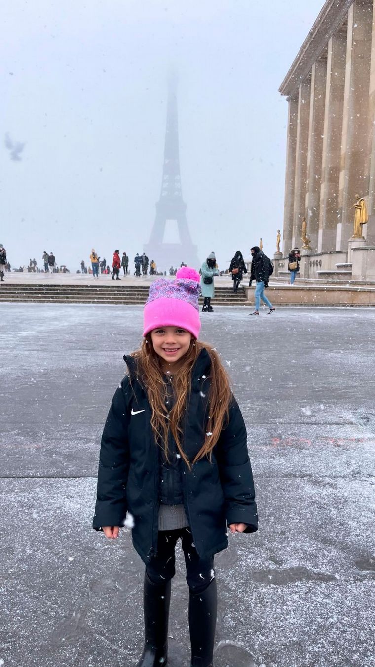 Además, compartió imágenes de sus hijos junto a su abuela disfrutando de la nieve frente a la catedral de Notre Dame.