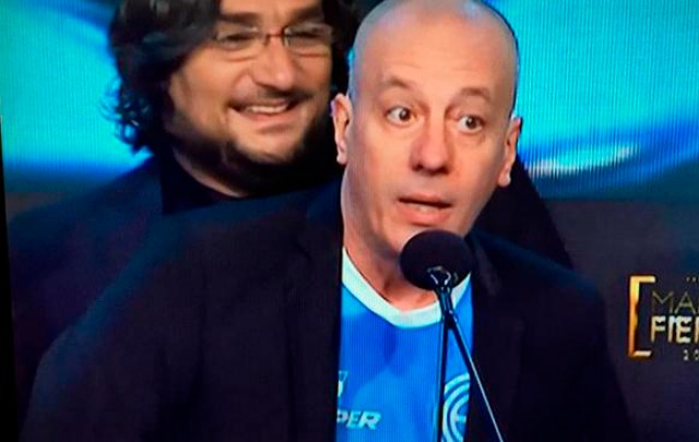 “Peligro sin Codificar” (Telefe) ganó el premio Martín Fierro al Mejor Programa Humorístico en TV. Fiel a su estilo, el cómico llamó la atención con la casaca del "Pirata" bajo el saco.