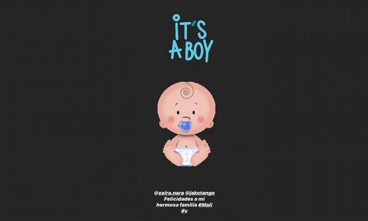 Wanda Nara, hermana de Zaira dio a conocer la noticia a través de Instagram Stories. "It''s a boy (es un niño). Zaira y Jako, felicidades a mi hermosa familia. #Mali #V", escribió.