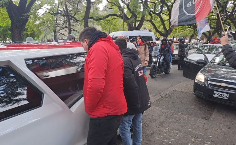 Más de 20 autos acompañan el cortejo fúnebre hacia el Cementerio de Granadero Baigorria en donde será cremada y las cenizas se esparcirán en la cancha.