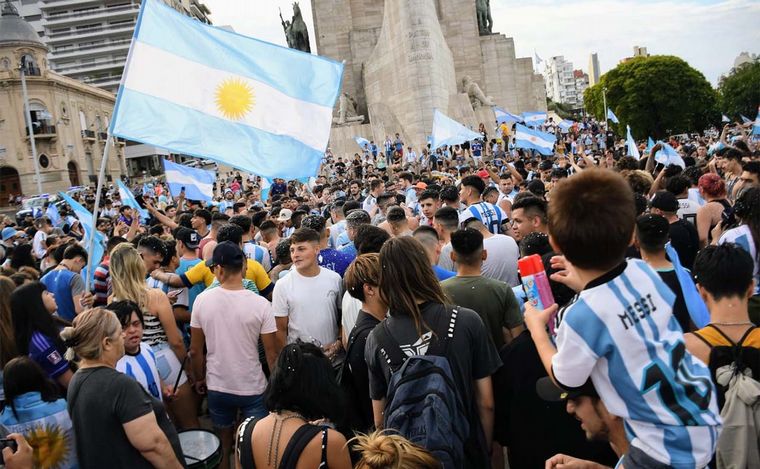 Audio. Festeja Rosario: el Monumento comenzó a poblarse tras el triunfo argentino.