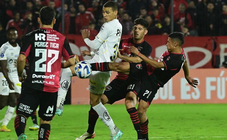Santos sorprendió a Newell's en el primer tiempo con una presión alta, al extremo que se paró con un 4-3-3, con la línea de defensores muy cerca de la media cancha y con la idea de atacar o de cortar y salir rápido en contraataque.