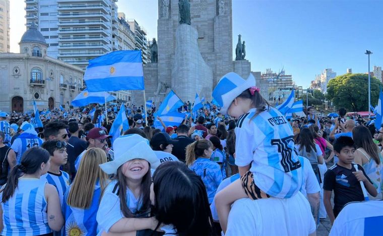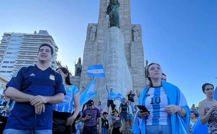 En la tierra de Lionel Messi no tardó en poblarse el histórico enclave elegido por los rosarinos para manifestarse, en este caso, con la alegría por estar entre los ochos mejores de mundo. Mirá.