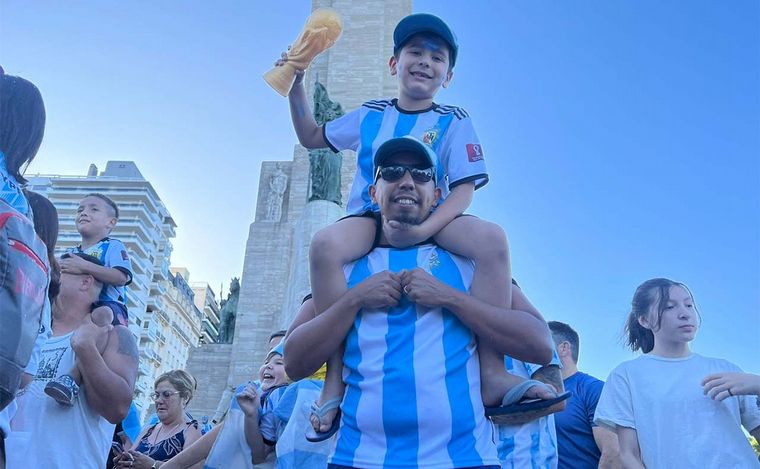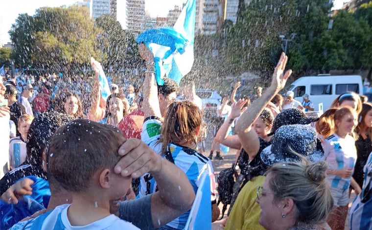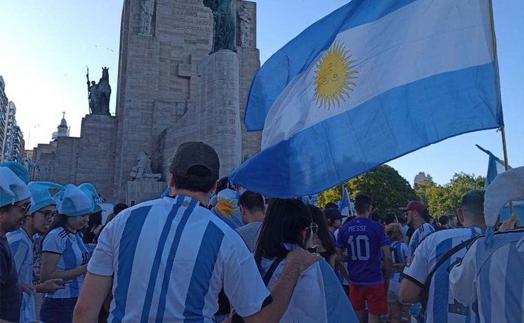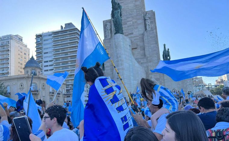 Se desató la fiesta en el Monumento a la Bandera tras la victoria argentina