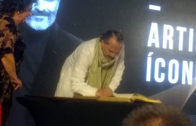 Durante la ceremonia, el camaleónico artista nacionalizado español brindó una conferencia de prensa, en la que, de muy buen ánimo, habló de sus hijos y expresó palabras afectuosas para Viña del Mar.
