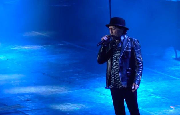 A las 21:45, Rony Vargas y Patricia Sosa presentaron al español, que se asomó al escenario con su emblemático sombrero bombín en mano, campera de cuero negra y pantalón a juego.
