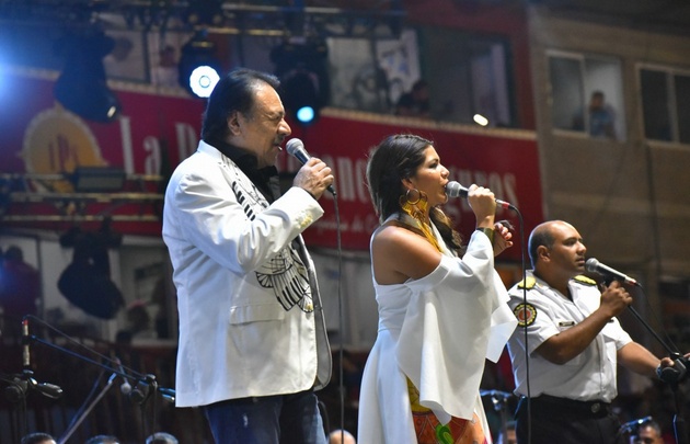 Los artistas fueron acompañados por la Banda de la Policía que estuvo a la altura de las exigencias de los ritmos.