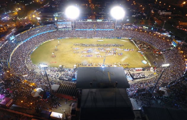En la medianoche, el espectáculo "Malambo Retumba" sorprendió con una puesta en escena de alrededor de 800 bailarines y músicos.
