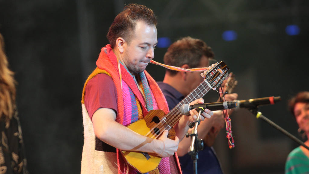 El ex integrante de Los Carabajal tuvo como invitado a Dalmiro Cuéllar Ayala, exponente de la música folclórica del Gran Chaco, en Bolivia, que agregó tintes diferentes a su show.