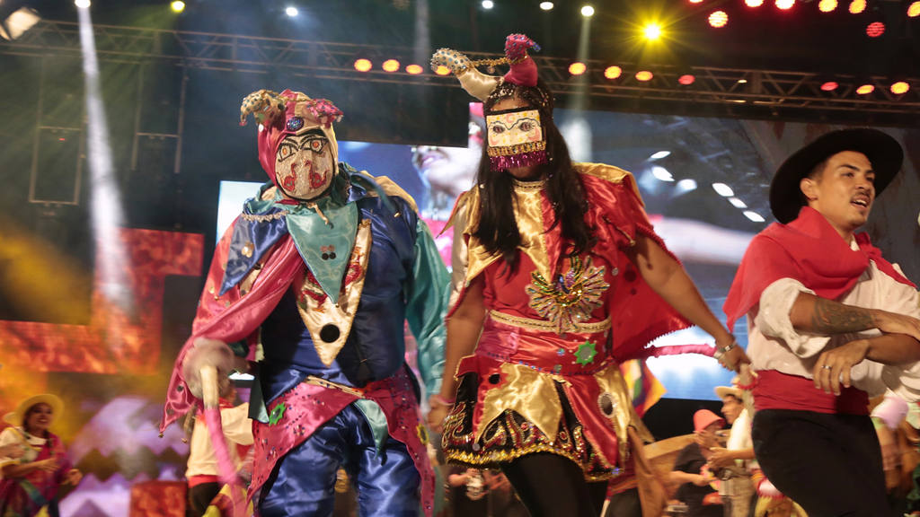 El multitudinario espectáculo se volvió una verdadera fiesta, con la presencia simultánea de baile y ritmos jujeños, entre un mar de colores y máscaras.