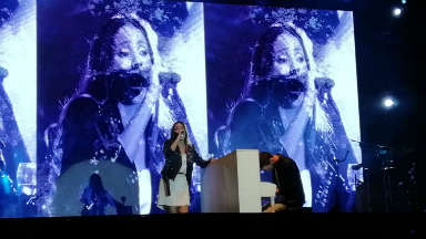 El artista estuvo acompañado en el escenario por Magdalena Soria, quien formó parte de su equipo en La Voz Argentina, e interpretaron juntos la canción.