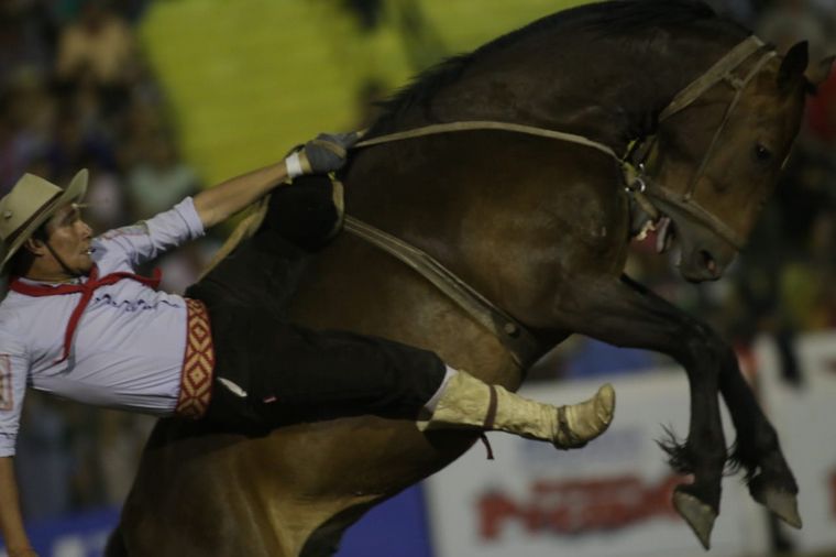 La octava noche de color y coraje se inauguró oficialmente a las 22. El relator de jineteadas Néstor Ramello se encargó del tradicional "grito de argentinidad".