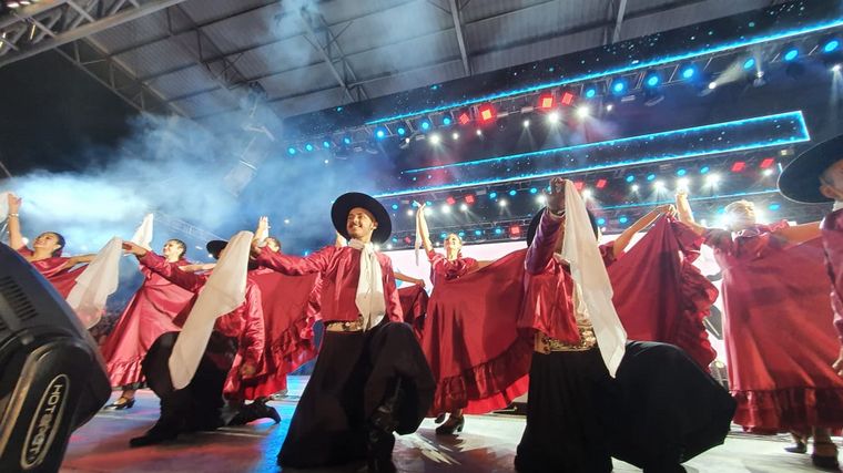 El ballet "Coraje de Tradiciones" realizó el primer número de la velada en el escenario Martín Fierro.