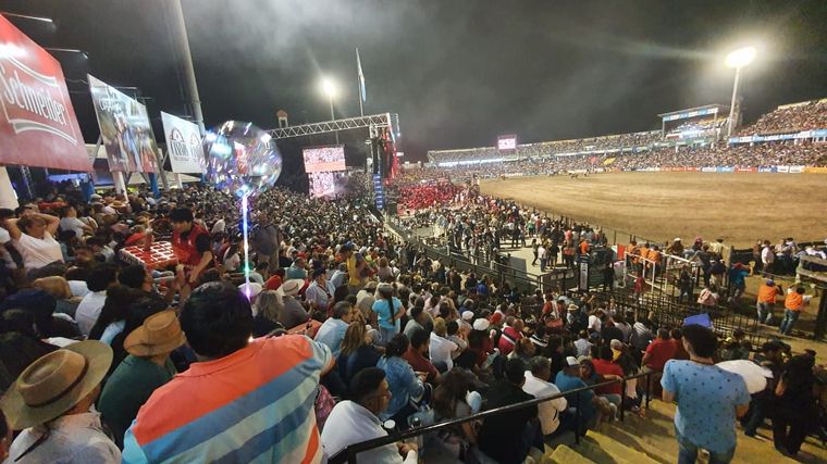 Alrededor de las 23,15 se vivió la última jineteada de la noche y las casi 29 mil personas presentes pudieron distribuirse de manera más cómoda entre el campo y las tribunas.