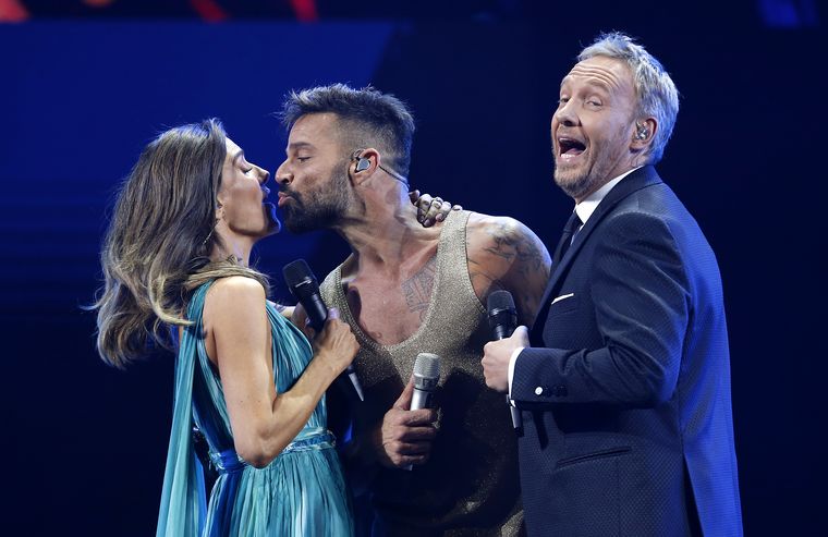 Ricky Martin protagonizó una de las joyitas de la primera noche del Festival de la Canción de Viña del Mar al besar a ambos conductores, María Luisa Godoy y Martín Cárcamo.