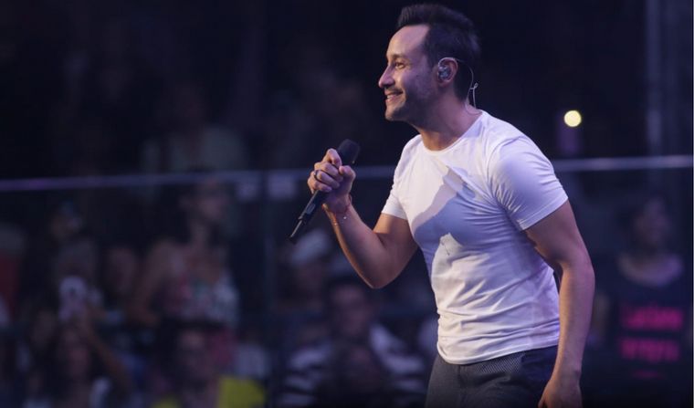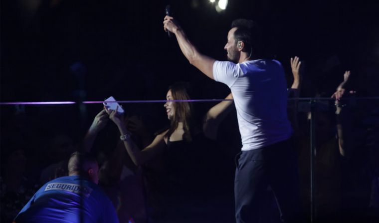 Como en casa, recorrió cada rincón del escenario y se acercó a saludar al público mientras cantaba El vestido rojo, Quédate conmigo y Que suerte tiene él, entre otros éxitos que lo consagraron.