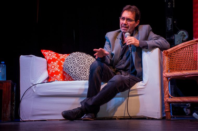 El relator de Cadena 3 Carlos Andrés "El Bocha" Houriet brindó una charla junto al periodista de ESPN Miguel Simón en el anfiteatro Luis Amaya de Río Tercero, en el marco de la Fiesta de la Capital Nacional del Deportista.