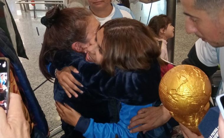 La selección llegó al país este miércoles tras la consagración histórica. Las jugadoras cordobesas fueron recibidas por sus familiares en el aeropuerto de Córdoba y por mucha gente que se acercó a saludarlas.