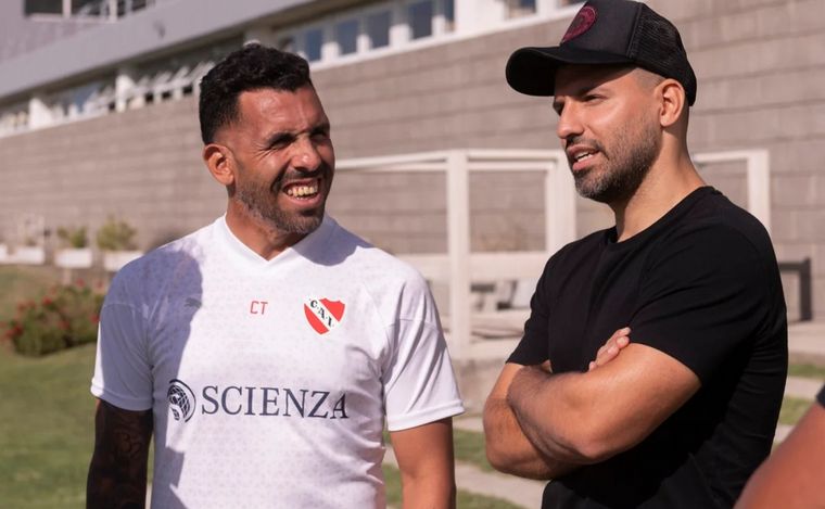 El exdelantero Sergio "Kun" Agüero visitó este martes el predio de Independiente en Villa Domínico para reencontrarse con Carlos Tevez, su excompañero en la Selección argentina y en el Manchester City, y saludar a los jugadores del "Rojo".