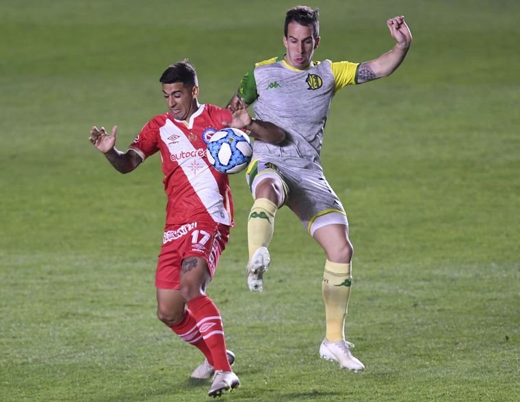 Aldosivi jugó de igual a igual, con la distribución de Francisco Grahl y Leandro Maciel, línea de tres en el fondo y el acompañamiento más adelantados de Emanuel Iñíguez por derecha y Lucas Villalba por izquierda.