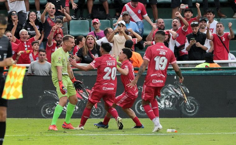 A pesar de jugar con un hombre más desde el minuto 13 del segundo tiempo tras la expulsión de Raúl Gustavo, que le pegó al árbitro chileno Piero Maza y vio la roja, el equipo argentino tuvo que esperar hasta el final para asegurar el triunfo, con una destacada actuación del arquero Diego Rodríguez, que lo salvó con una gran atajada.