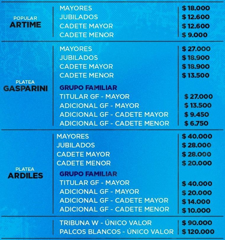 Serán precios diferenciales para que los socios puedan acceder a la cancha en los encuentros de fase de grupo. Los precios parten desde los $9.000 y aumentan según categoría y tribuna.