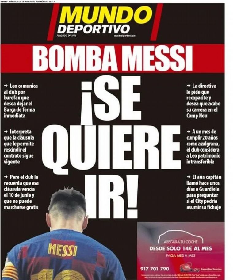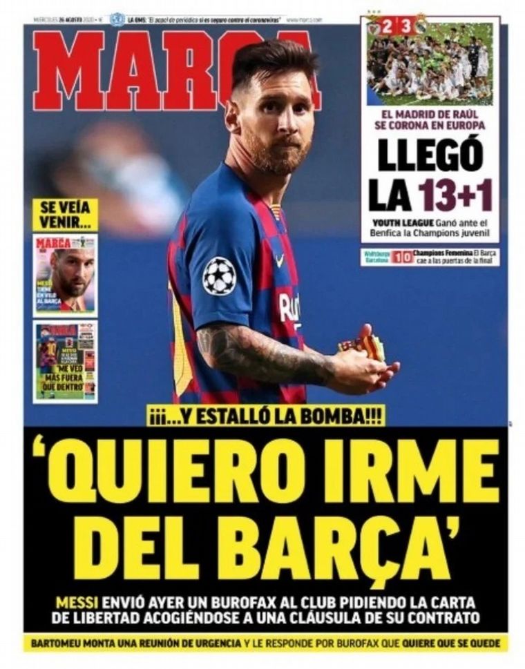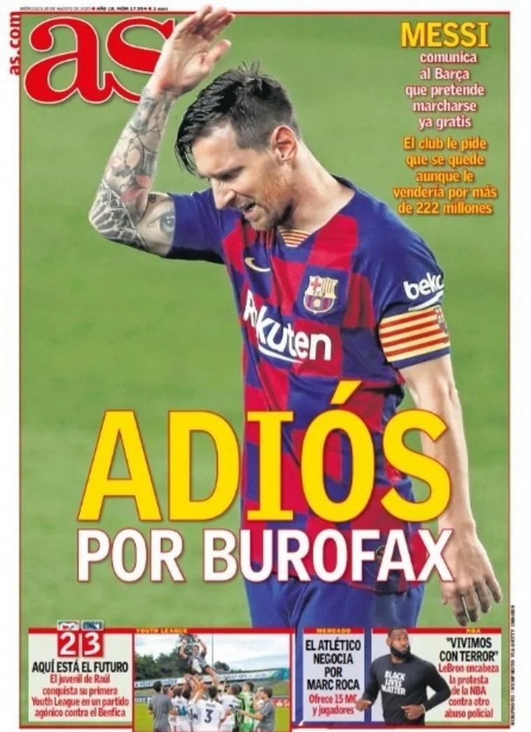 El astro argentino Lionel Messi le comunicó al Barcelona de España su intención de ejecutar una cláusula especial de su contrato e irse del club, el único en el que jugó en su carrera profesional, a partir de los desencuentros y decisiones de la directiva encabezada por Josep Bartomeu, tras la dura eliminación en la Liga de Campeones.
