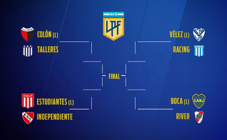 Según quedaron determinados por las posiciones de la fase de grupos, los encuentros de cuartos de final serán Vélez-Racing y Boca-River por un lado del cuadro, más Colón-Talleres y Estudiantes de La Plata-Independiente por el otro.