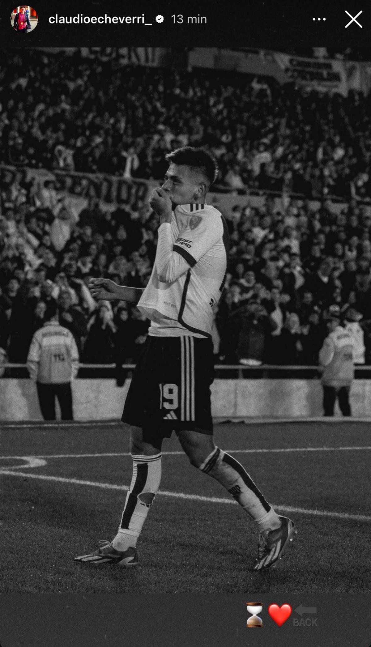 Mediante una fuerte historia de Instagram, el “Diablito” reveló su sensación con una fotografía en blanco y negro de su paso por River Plate. En la misma, la joya de la institución se besó el escudo del club.