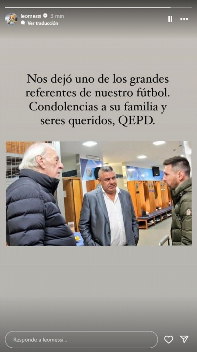 "Nos dejó uno de los grandes referentes de nuestro fútbol. Condolencias a su familia y seres queridos. Que en paz descanse", escribió el futbolista del Inter Miami.