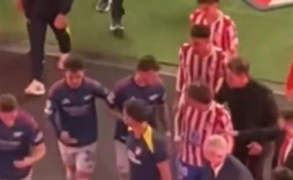 Tras el final del primer tiempo, el Arsenal se fue al vestuario con ventaja tras un penal. En ese momento, los jugadores salieron juntos hacia el túnel que conduce a los vestuarios. Fue allí donde ocurrió un incidente que pasó desapercibido para la transmisión del partido.