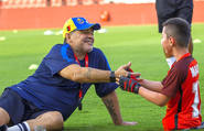 "Hoy estuve jugando un rato con mi amigo Alí, que vino a visitarme al entrenamiento del Fujairah. Gracias por tu ejemplo de superación, Alí, tu amigo Diego", escribió Maradona en sus redes sociales.