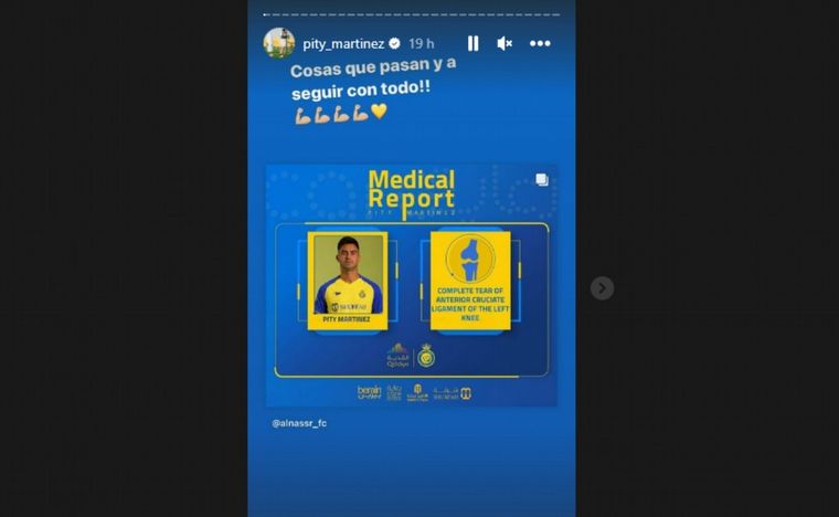 "Le deseamos una rápida recuperación. Vas a volver más fuerte. Ánimo, Pity" fueron las palabras de ánimo del club árabe en el reporte médico de Martínez luego de anunciar el grado de su lesión.