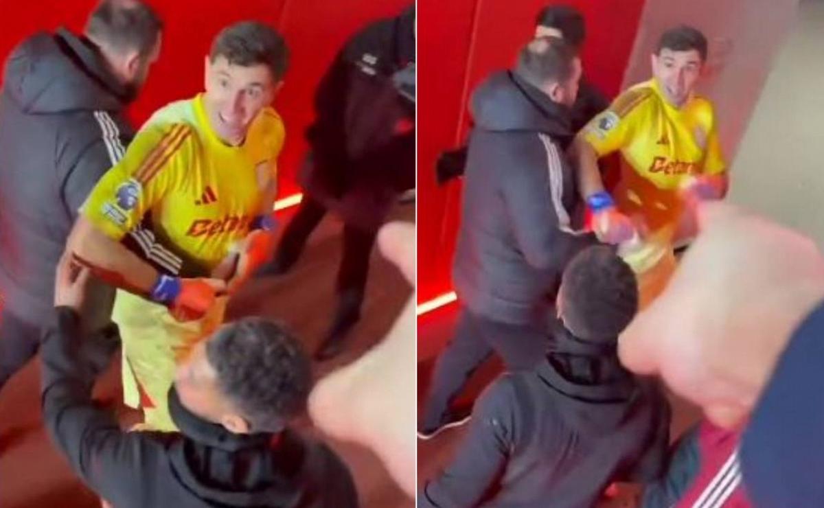 El tenso cruce del "Dibu" Martínez con hinchas del Arsenal