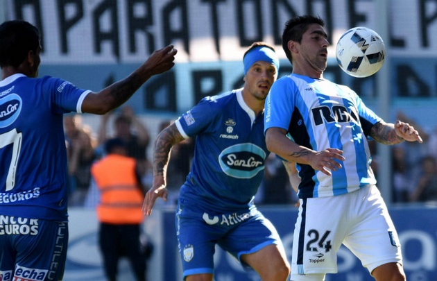 Racing nunca terminó de acomodarse en el primer tiempo para hacerse dueño del juego, por eso apostó a las pelotas paradas de las que mayormente se hizo cargo el neuquino Marcos Acuña, hoy observado por José Di Leo y Maximiliano Bauza, colaboradores del entrenador del seleccionado argentino, Edgardo Bauza.